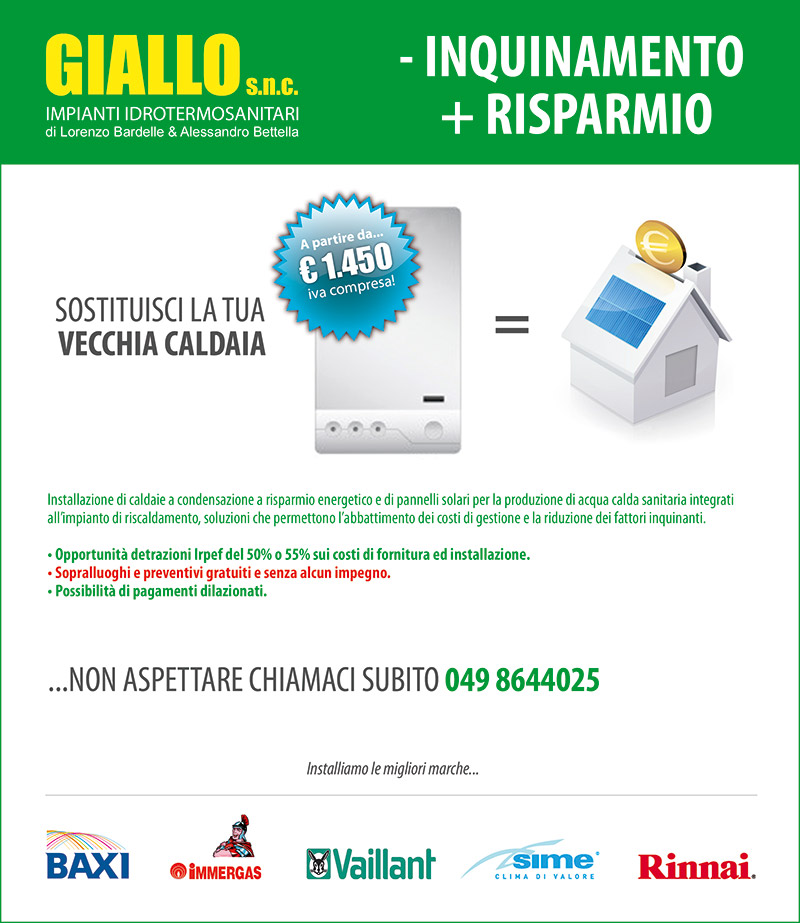 | Attività - Idraulica - Installazione di caldaie - Installazione di impianti di riscaldamento - Installazione di impianti idraulici - Manutenzione impianti idraulici - Ristrutturazione di impianti idraulici - Sostituzione caldaie - Installazione apparecchi anticalcare - Installazione colletori solari - Installazione asciugatrici a gas |